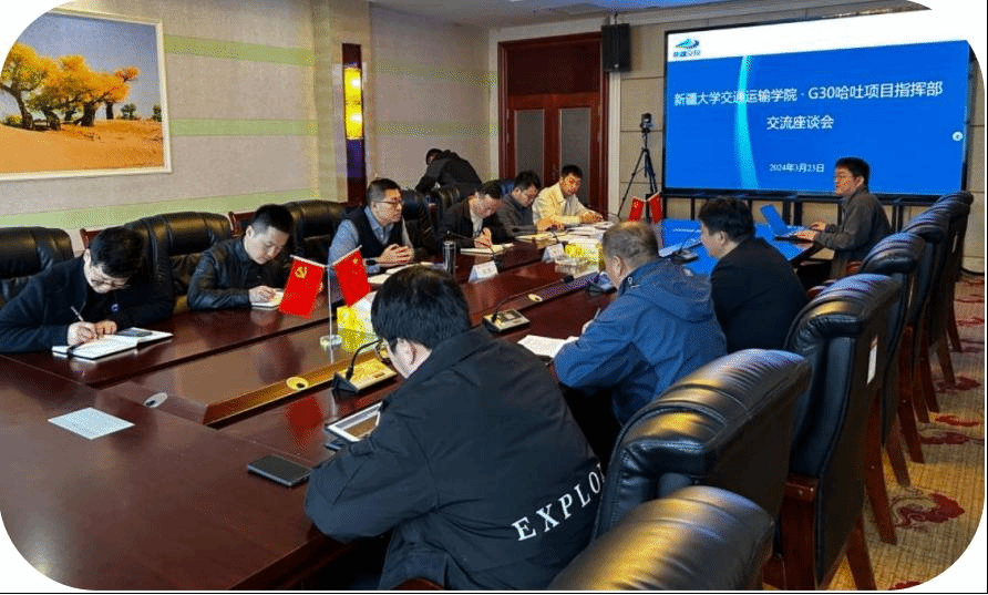 为推进吐哈高速改扩建工程高质量发展,3月23日上午,学院党总支书记冉武平教授带队赴G30吐哈高速改扩建项目指挥部进行座谈交流,交通运输系艾贤臣副教授、程龙博士参与座谈。G30吐哈高速改扩建项目指挥部常务副指挥长刘伟、张广志,工程部部长关志凯,新疆交通规划勘察设计研究院有限公司G30哈吐项目设计2标设计代表张飞,新疆交勘致远工程科技有限公司科技部副部长李光耀等参加交流座谈。会议由刘伟主持。